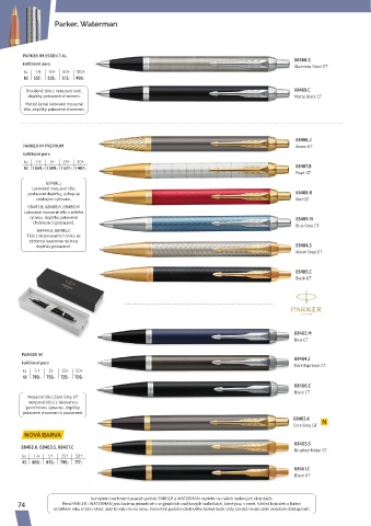 74 Pera PARKER i WATERMAN jsou balena jednotlivě v originálních značkových krabičkách, které jsou v ceně. Vzhled krabiček a balení