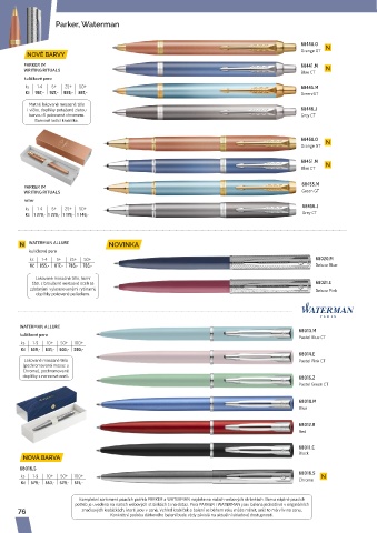 potřeb je uvedena na našich webových stránkách či na dotaz. Pera PARKER i WATERMAN jsou balena jednotlivě v originálních